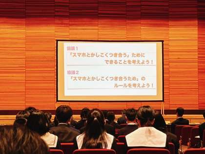 本サミットでは、「スマホとかしこく付き合うためにできること(ルール)を考える」をテーマに参加した 校の生徒会役員らと議論を行いました。