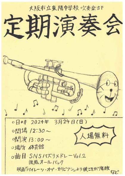 恒例の定期演奏会を行います。お時間のある方はぜひお越しください!
