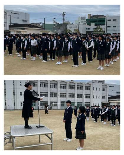 今朝の全校集会で、各学級活動で決めた前期学級委員の認証式が行われました。