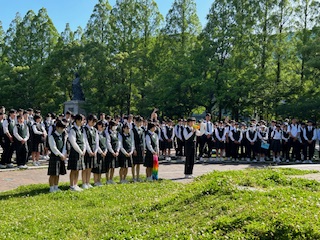 爆心地公園にて、千羽鶴の奉納と平和宣言を行いました。