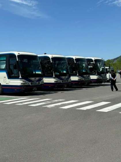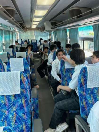 水辺の森公園の駐車場のバスの中、全員集合出来ました。