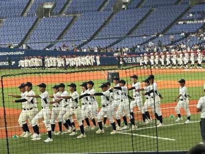 京セラドーム大阪にて、「令和6年度大阪市秋季総合体育大会 軟式野球の部 開会式及び大阪市オールスター選手激励会」に本校野球部が参加しました。プロ野球試合終了直後の球場を堂々と行進しました。1回戦は8月24日 新生野中学校で行われます。