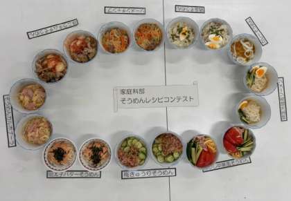 8/19(月)家庭科部では、それぞれが持ち寄ったそうめんをアレンジしたレシピを作りました。