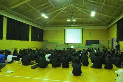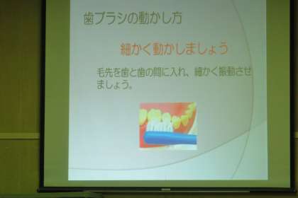 「歯と口の健康教室」が行われました。保健委員が、パワーポイントではと健康のスライドを作成してくれました。さらに、歯科医の先生にお越しいただき、お話しをしていただきました。