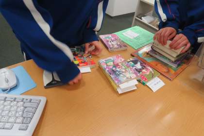 図書館では、バーコードで本を他の図書館に貸し出す作業を