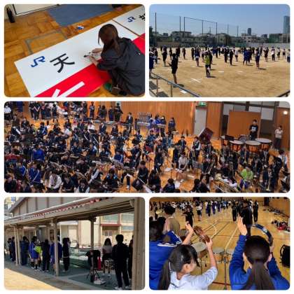 大阪市中学校合同バンドとして、複数校の吹奏楽部と一緒に参加します。普段では味わえないほどの多くの人数の中で演奏するのは、貴重な経験です。