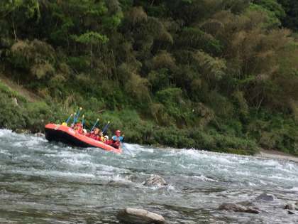 迫力があり楽しかったラフティングが無事終了し、現在、愛媛県今治市の「しまなみ」に向かっています。各クラス分宿で、色々な取り組みが楽しみです。今夜は生涯で最高の思い出ができそうです。みんな元気いっぱいです。