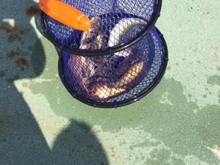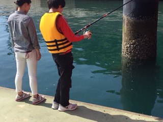 魚釣りを楽しんでいます。魚が釣れて、大感激です!