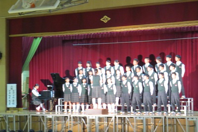 さすが、3年生の歌声です。 男女のバランスやハーモニーなど まろやかな歌声が響いています。音の強弱もはっきりとし、心こもった歌声を聞かせてくれました。