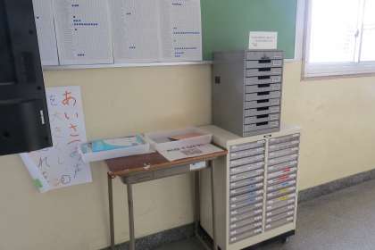 各学年の廊下には「学習プリント等をいれる棚」が設置されています。