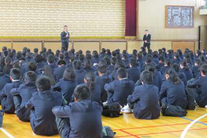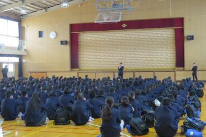 部活動では、明日(25日)は、吹奏楽部が第10回の定期演奏会があります。地域の皆さまをお迎えして、1年間の感謝の演奏会にしていきます。また、運動部は冬に鍛えた心と体で春の大会へむけてスタートしています。さらに、女子バスケット同好会が3月 初めての1年生大会に出場しました。一生懸命プレーする姿には感動しました。29年度は部に昇格し活動します。ますますの活躍を期待しています。