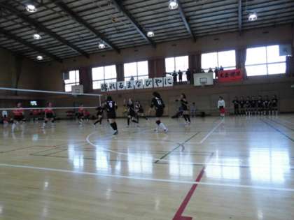大池中学校と第2セット善戦。レシーブとサーブで接戦に。