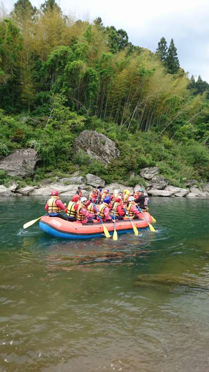 ラフティング体験です。難所もうまくきり抜けることができました。