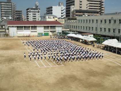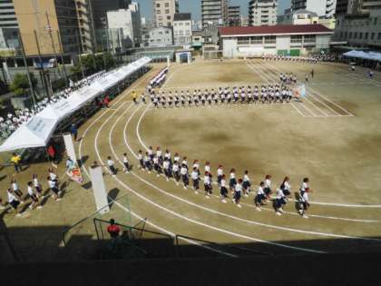入場行進 しっかり腕をふり、足をあげ、 大地を踏みしめての行進
