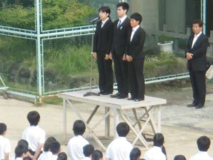 教育実習で3週間学んだ卒業生の皆さんのお礼のあいさつ。