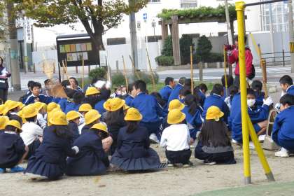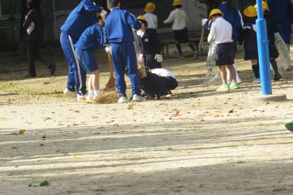 各班に分かれて、自己紹介し小学1,2年生の児童と中学生のお兄ちゃん、お姉ちゃんとの楽しく会話をしながら、清掃活動をしました。