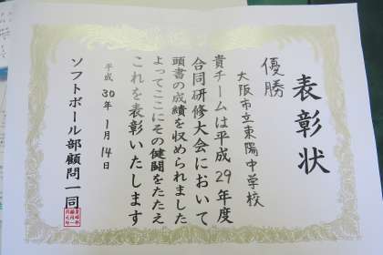日ごろの練習の成果がすばらしい結果に。 春、夏の大会へむけて頑張りましょう。