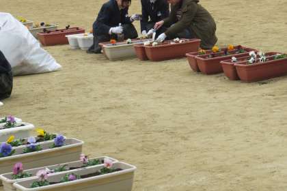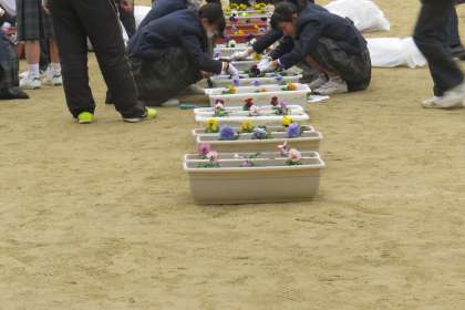 ふれあい植栽 卒業式にむけてパンジーを植えました