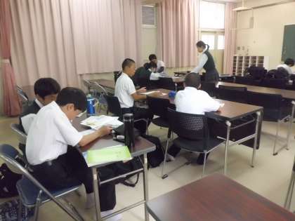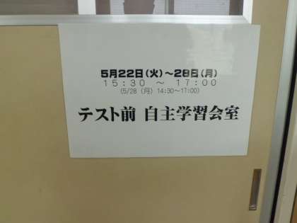 中間テスト前に元気アップ事業の学力向上支援として、自主学習室の開放を行っています。