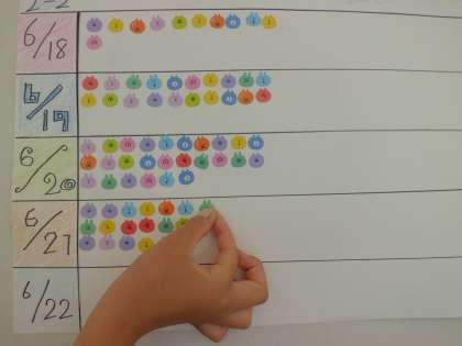 歯を磨いたらシールをもらい、廊下の用紙に貼っています。