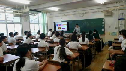 2・3年生はJICA(国際協力機構)の青年海外協力隊に参加し、、開発途上国で活躍した方々を講師にお招きして現地での体験談や世界の人々が互いに認め合い共生するためにはどうすべきかを生徒に考えさせる出前授業です。