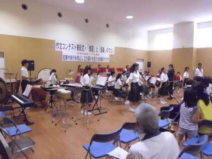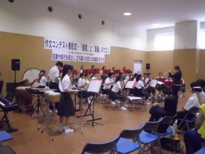 また、吹奏楽部による演奏をさせていただきました。曲目は『やってみよう』『斐伊川に流るるクシナダ姫の涙』『フィンガー5コレクション』『社会を明るくする運動のテーマソング』