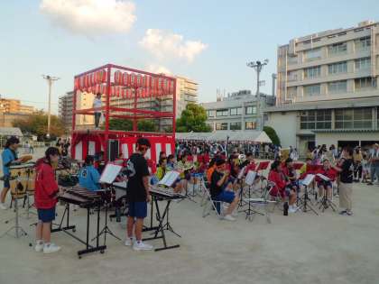 宝栄小学校で行われた納涼の夕べに、本年も吹奏楽部がオープニングの演奏をしました。