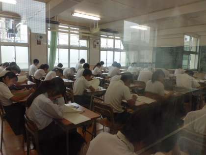 1限〜5限まで、国語、社会、数学、理科、英語が行われました。