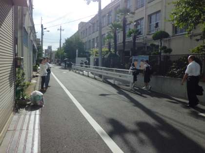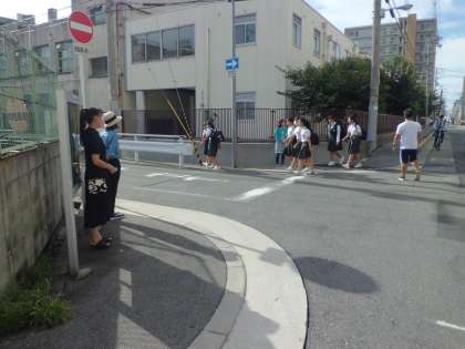 生徒の登校している様子を見ていただくこともできました。また、あいさつを交わすことで、お互いが気持ちよく一日が過ごせました。