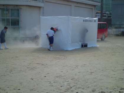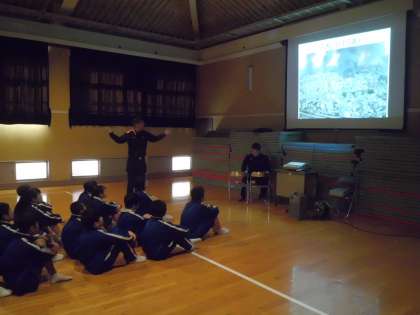 1年生は、煙体験、そして武道場でビデオを見て、さらに講話をしてもらいました。