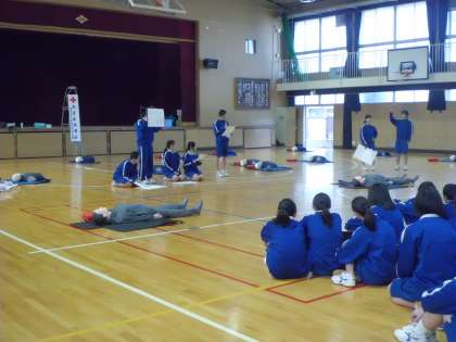 2年生は、体育館で一次救命講習(BLS)を行いました。