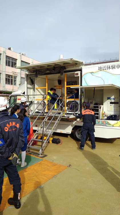 12月 9日に宝栄小学校で、地域の震災訓練が行われました。