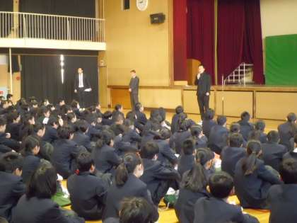 と計画をたてること、準備をすることの大切さについて、さらに、新年を迎え、一人一人が新たな決意や目標を定めたことと思います。寒さ厳しい日々を迎えますが、その達成に向け少しずつでも、毎日努力をしていきましょう。と校長先生からお話がありました。