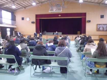 寒い中、たくさんの新入生の保護者の方が来校されました。