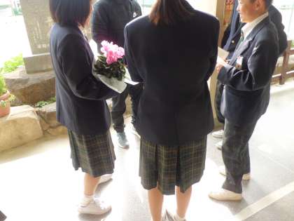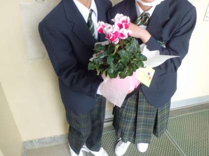 本日、9月に職場体験でお世話になったところへ、1年生がそのお礼と、また来年度も職場体験でお世話になるお願いに行きました。シクラメンを持って行きました。