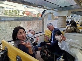 お天気も良く、船から川沿いの人に手を振ったり、大阪中之島の観光ができました。ランチ会場では参加者同士の交流もでき、学年をこえた情報交換の場にもなったかと思います。