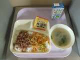 本日のメニューは、鶏肉のから揚げ、チンゲンサイともやしの甘酢あえ、中華スープ、...