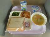 本日のメニューは、ビビンバ、トック、いり黒豆、牛乳 です。 ビビンバ : ...