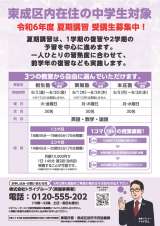 東成区役所市民協働課から塾代助成事業対象の夏期講習の周知依頼がありました。東成区...