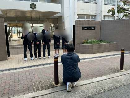 教室や校庭など、思い出の場所で撮影が進み、どの生徒も笑顔で、仲間との大切な時間を切り取るように臨んでいました。