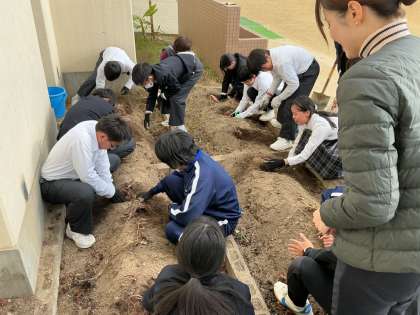 本日、特別支援学級の生徒たちが校内の畑で芋掘りを行いました。