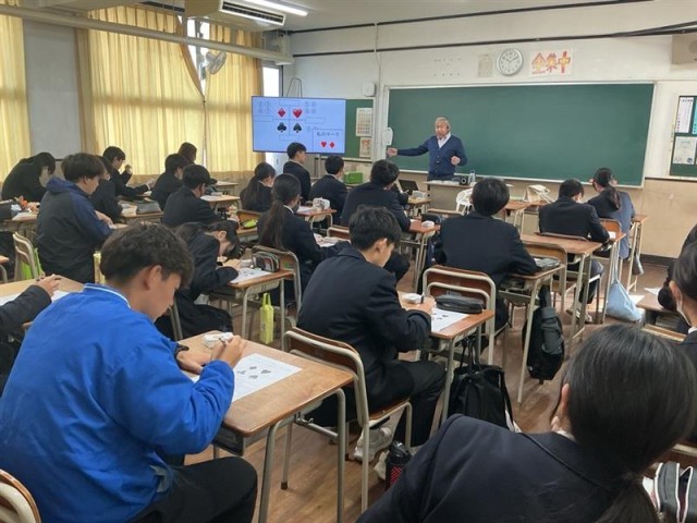 本日、外部講師の先生をお招きし、「SPトランプ」を使ったキャリア学習の授業を行いました。