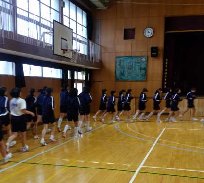 体育では集団行動を学習しています。