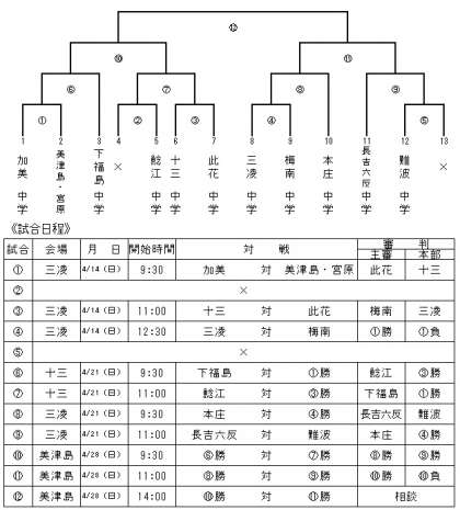 大阪市中学校総合体育大会 サッカーの部の対戦予定です。