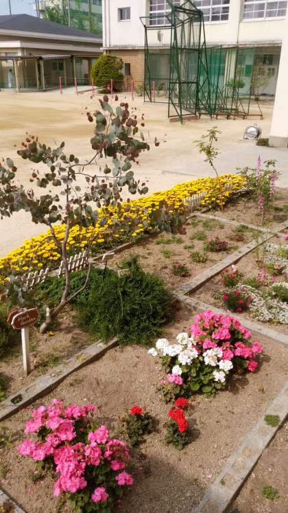ふと花壇を見ると色とりどりの花が咲いています。