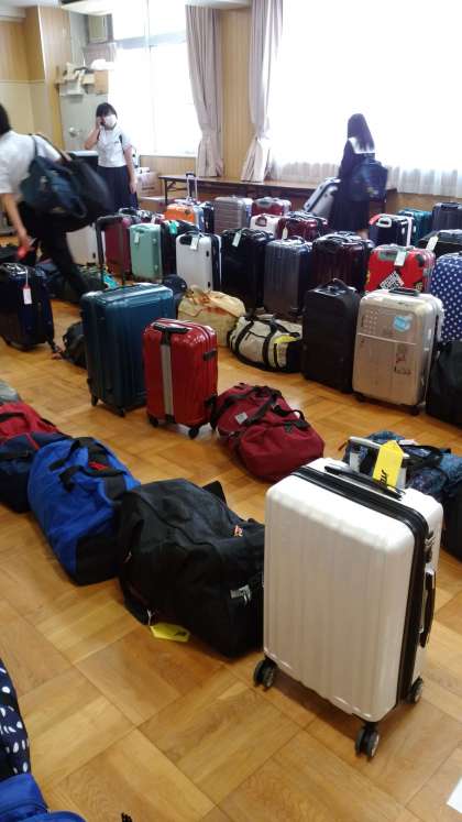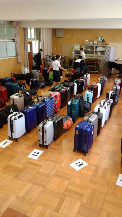 明日からの修学旅行のため、3年生は荷物を持ってきています。