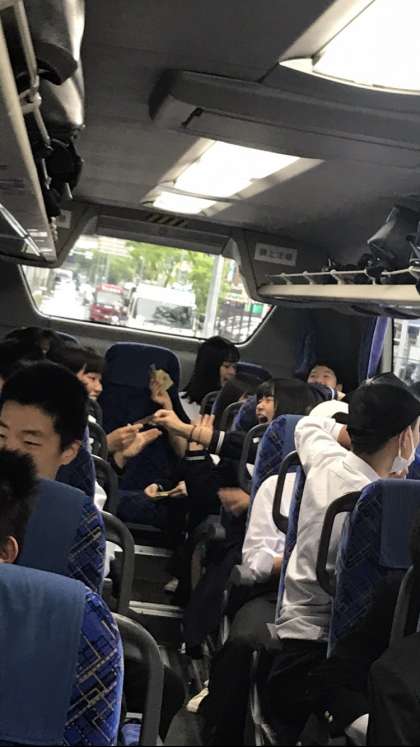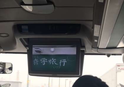 バスの中ではDVDを観たりレクリエーションが始まっています。