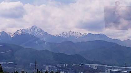 今のところ快晴です。バスの中から北アルプスがとても綺麗に見えています。