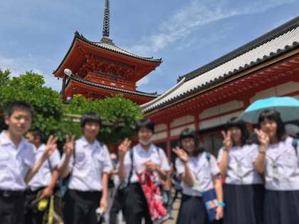 多くの生徒は清水寺を通過していきます。