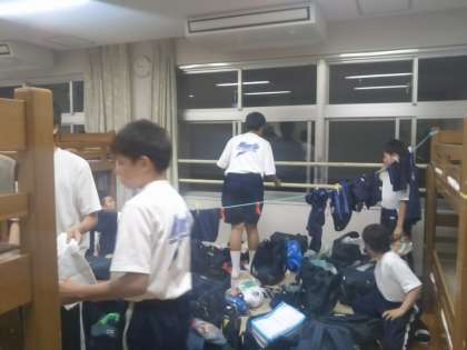 部屋を片付けています。普段からやっている子は、荷物のまとめ方もうまく、流石にテキパキと動けます。